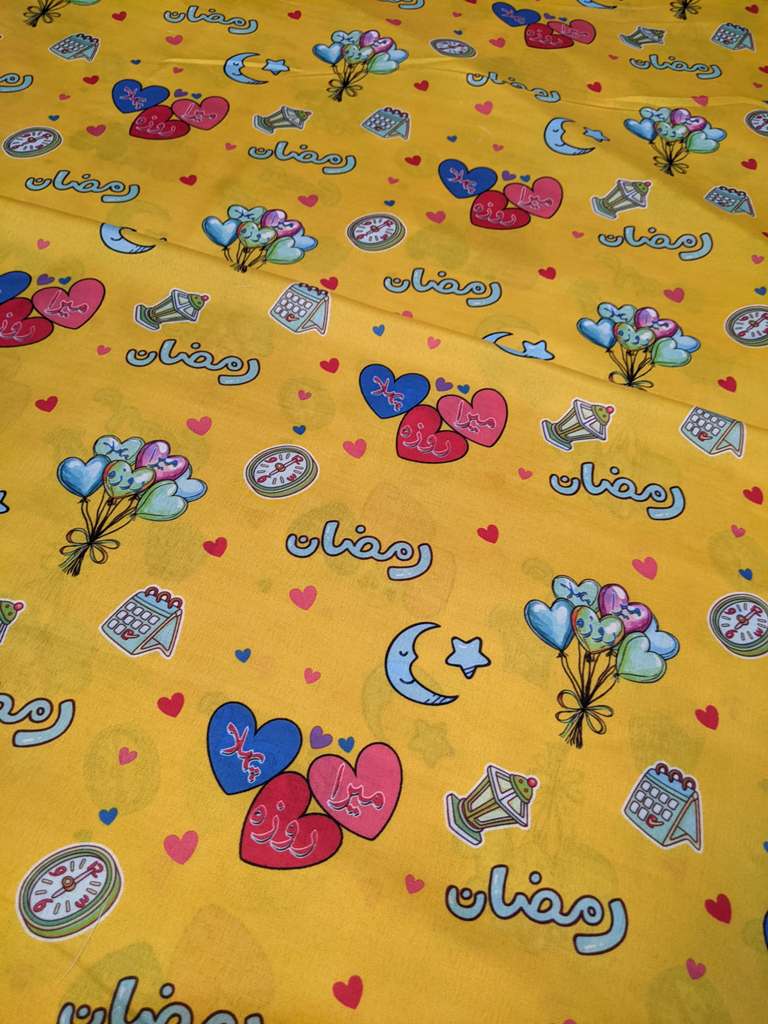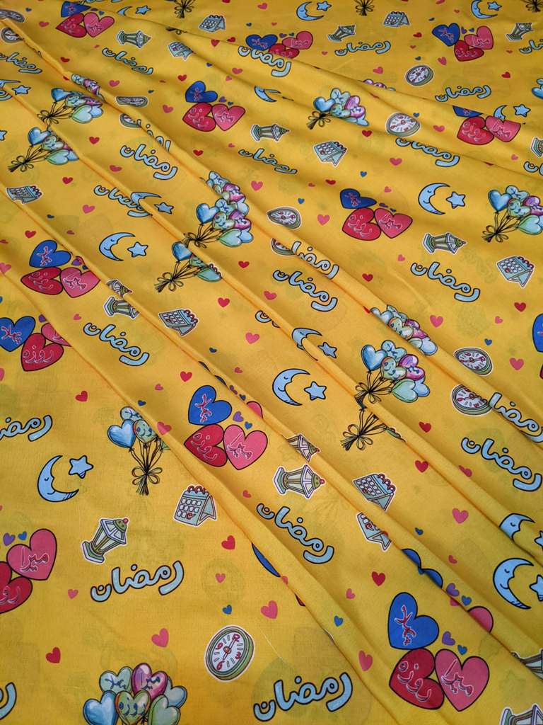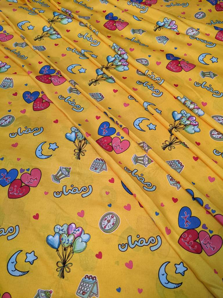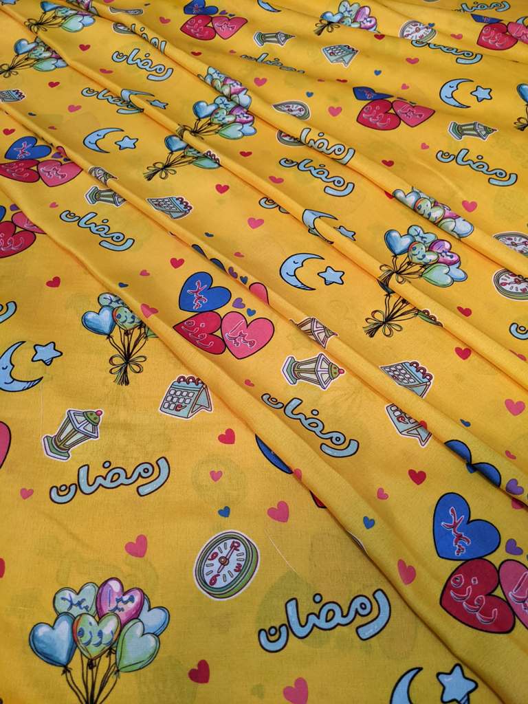 Make this Ramadan and Eid extra special for your little ones with our bright and joyful 3D-printed fabric! This vibrant yellow fabric is filled with festive designs that bring the spirit of Ramadan to life. Featuring:
