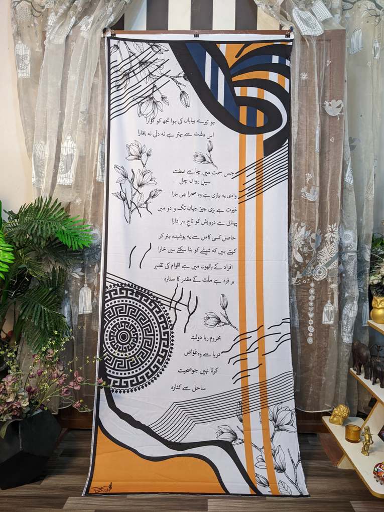 - Minimalist design featuring Allama Iqbal’s poetry in a striking black and white colour scheme.